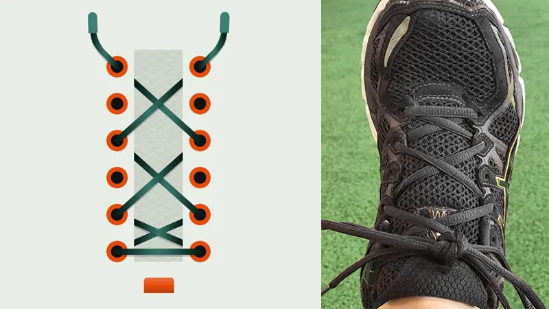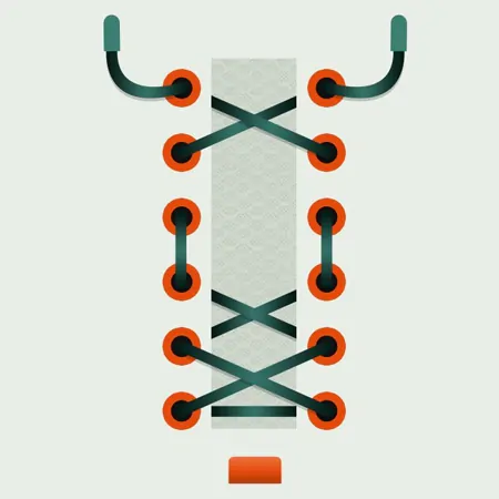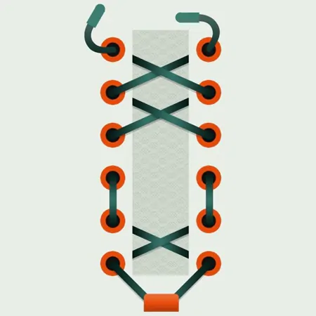 A variation of criss-cross lacing that skips the center for added breathability. Great for adjusting fit between toe and heel.