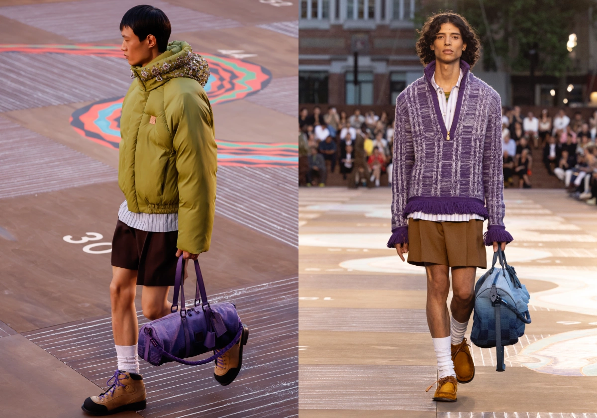 The color palette—ranging from saffron yellows and deep maroons to indigo blues and shimmering golds—was a tribute to India’s diverse landscapes and festivals. Metallic detailing, traditional embroidery, and silk jacquards added texture and depth, while iconic LV motifs were seamlessly integrated into Indian craftsmanship.