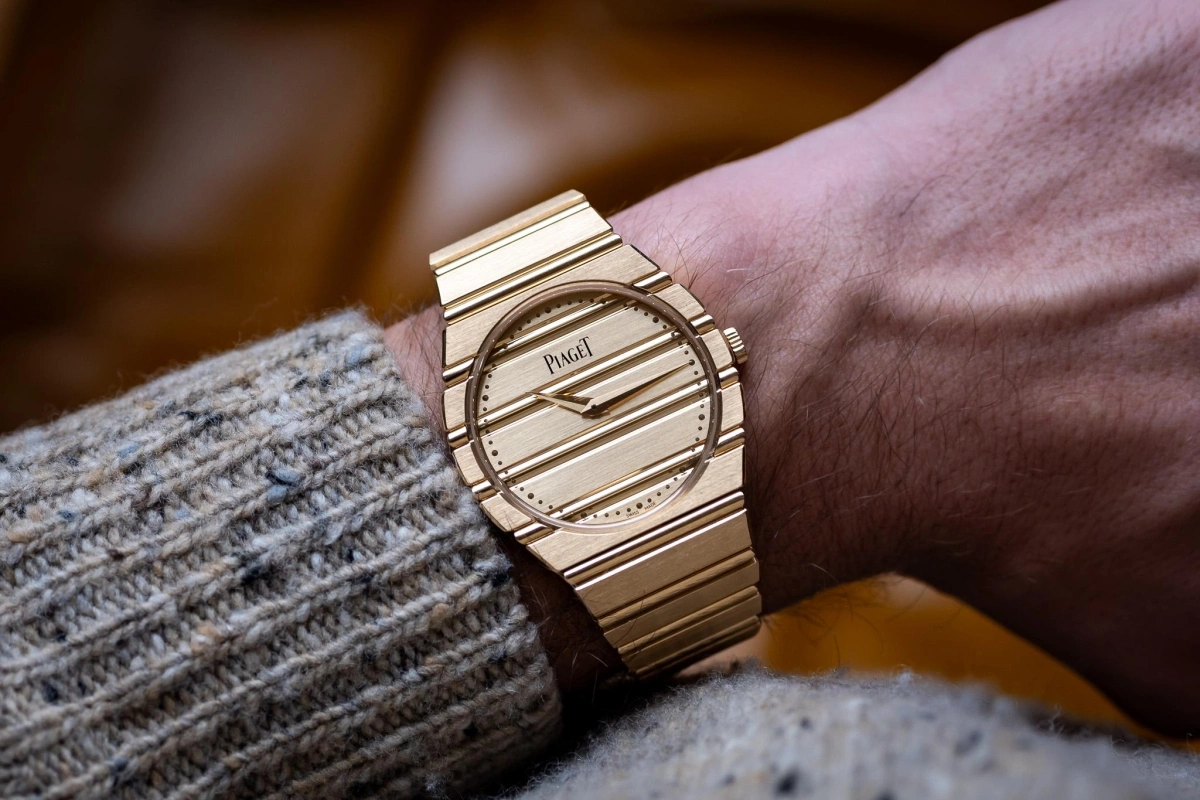 At the time, Piaget leveraged the record-breaking thinness of its in-house quartz 7P movement (just 3.1mm thick!) to create a new genre: the all-gold “watch-as-bracelet.” With nothing but yellow or white gold, Piaget introduced a variety of Polo styles that have since become treasured collector’s pieces, now regularly seen at auctions like those held by Artcurial.